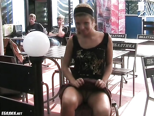 Бесстыжая шалунья светит киской в оживленном кафе